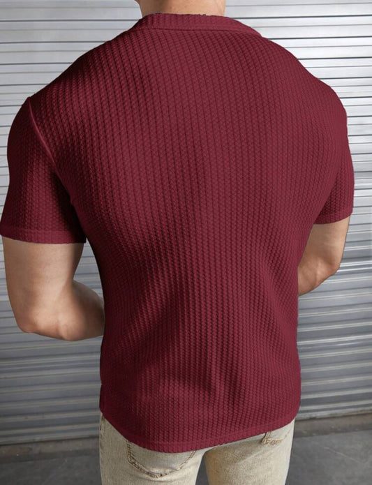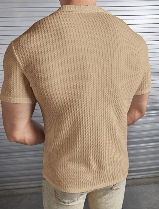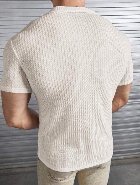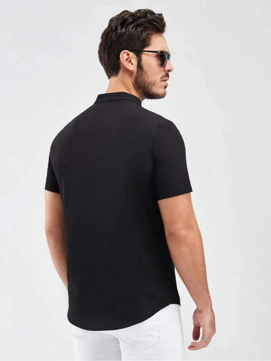 Modomio Hombres Camisa unicolor con botón delantero