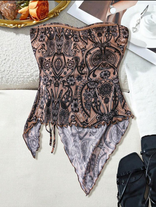 Blusa de malla con hombros descubiertos y efecto tie-dye de moda, primavera/otoño