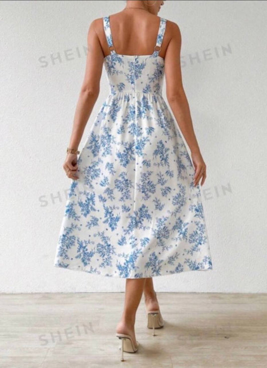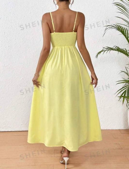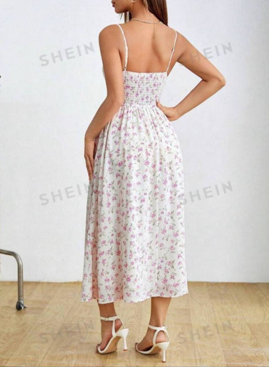 Vestido rojo sólido con hombros descubiertos y flores 3D