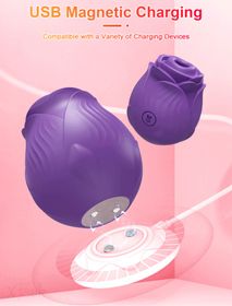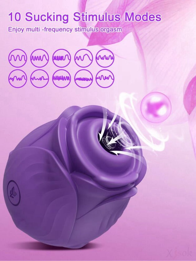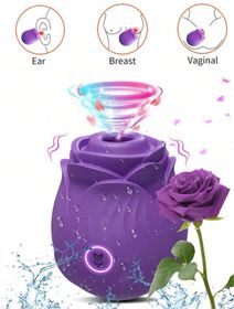 Jueguete sexual con diseño de rosa, color lila, hecho de silicona de alta calidad. Funciona estimulando el pezón y el clítoris brindando máximo placer.